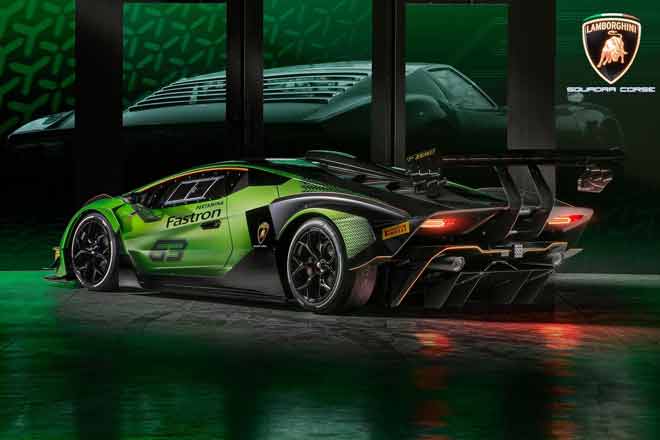 The Lamborghini Essenza SCV12 is built on a new-generation carbon-fibre monocoque which Lamborghini claims to so rigid, it doesn’t need a roll cage. So it’s a track weapon that doesn’t need a roll cage but meets FIA’s prototype safety regulations. Bolted right behind the driver is the 830hp 6.5-litre naturally aspirated V12 engine. The engine uses a bespoke kind of exhaust pipes that help reduce back-pressure and increase the explosive sonorous symphony of the 12 cylinders. The six-speed sequential racing gearbox not only sends power to the rear wheels but it also acts as the mounting point for the rear push-rod style suspension setup. Yes, the 830hp is only sent to the rear wheels, unlike Lambo’s road cars which are all-wheel drive. However, Lamborghini believes that thanks to a set of Brembo’s high-performance brakes mounted behind the massive 19in front and 20in rear magnesium wheels, which look stunning, you should be able to stop as fast as you can go.