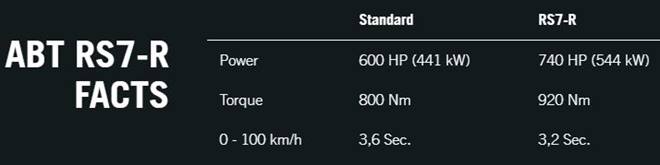 At the heart of the RS7-R package lies the performance upgrade ABT Power R, which boosts the performance of the standard model from 600 hp and 800 Nm to a hefty 740 hp and 920 Nm. There’s also a 2-year guarantee in the scope of the manufacturer’s guarantee.
