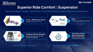 He went on to say that the All New Santro is based on six key pillars – Modern Stylish Tallboy design, Comfortable and Premium Cabin, New Age technology, Customer Centric Safety, All Round Performance and Complete Piece of Mind. It will debut Hyundai’s Advanced In-House developed Smart Auto AMT and will be offered with factory-fitted CNG option.