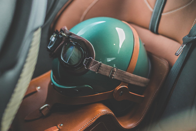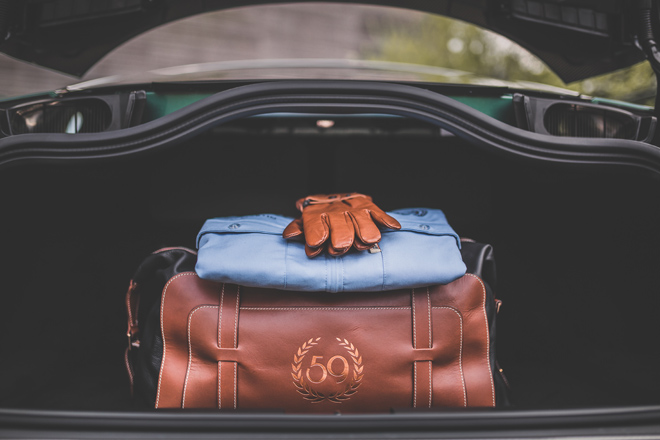 The Bronze details continue on the interior as the shift paddles and a bespoke ‘59 Edition’ logo embroidered on the seatback also have the same finish, while the rest of the cabin follows a combination of Obsidian Black and Chestnut Tan leather If you flip the driver side sun visor down, you will also notice that Q has even added a foil bronze inlay that outlines the original shape, chassis number and engine number of the DBR1 that won Le Mans in 1959. Additional accessories will also be offered with the car, most notable is a replica heritage racing helmet, 1959 blue race suits and replicas of Carroll Shelby’s race gloves.