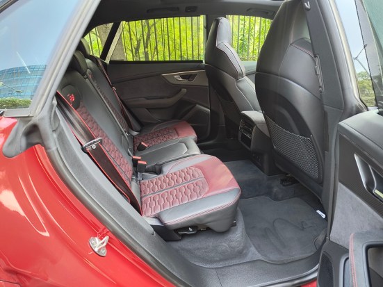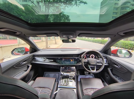 It’s a Q8 – Audi’s plushest SUV – and therefore comfort and space are the best you can experience. It has 4-zone climate control with air ioniser and fragrance function, and even in 45-degree May, the cabin reminded us of a January stroll in a fragrant garden. Front seats have a massage function, and rear seats are extremely spacious. The RS-specific layout reminds you it’s not your regular Q8, and needs to be handled carefully.