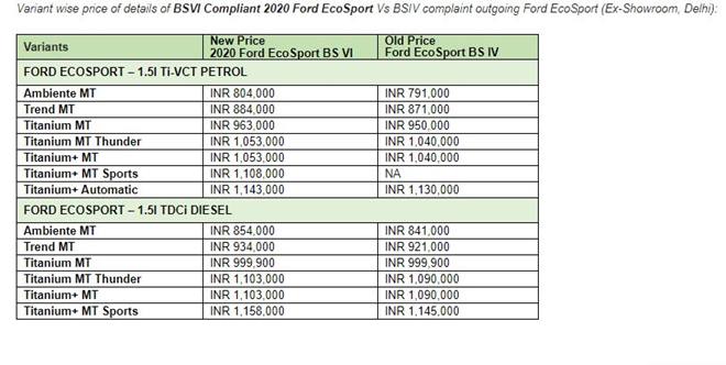 The BS-VI EcoSport comes with petrol and diesel engine options, that include a BSVI 1.5l TDCi diesel engine that delivers 99 hp and 215 Nm of torque and is paired with a five-speed manual transmission. The petrol variant is powered by Ford’s latest three-cylinder 1.5-liter Ti-VCT engine that delivers 120 hp and 149 Nm of torque. The petrol engine will continue to be paired with a five-speed manual transmission or a six-speed automatic transmission.