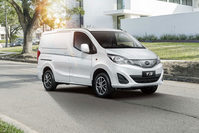 The T3 MPV and T3 minivan models adopt BYD’s proprietary battery technology. The vehicle offers keyless entry, push-button start, a music system with Bluetooth connectivity, reverse parking camera and sensors, and spaces for cargo storage or passengers.