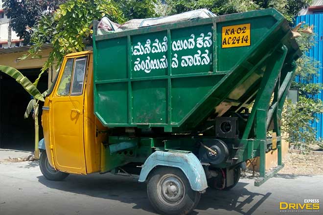 Adarin Hybrids (a SHADO Group company), was recently in the news when they came up with a fast charging solution for electric vehicles and launching launched an electric rickshaw three-wheeler. The company is again in the news now. They have converted a diesel garbage three-wheeler to electric. Yes, it has been done so many times in the past year that, you will wonder how it is a news anyways. The news here is that the garbage three-wheeler fleet owner himself approached Adarin Hybrids for this. The contractor, Srinivas Gowda, has a bunch of diesel-powered garbage three-wheelers (such as the one shown above) plying in the wards in Bangalore. He, himself, drives a Hyundai Kona EV and it is very evident why he wants to convert his garbage trucks to electric. Srinivas says that this drivers often complain of fatigue, pollution and other things when they wait for a household help to deposit garbage in the truck. To help eliminate all these and at the same time, ensure that the future stays green, he decided to go for this conversion.