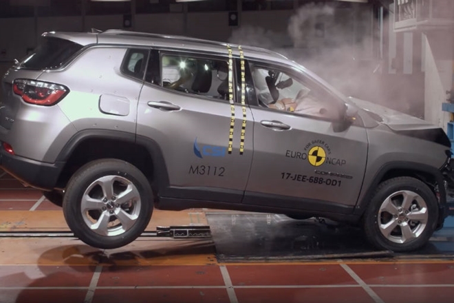 The Jeep Compass has been making waves since its launch last month, with sales making a considerable dent in terms of sales as well. The made in India Jeep has been given petrol and diesel engines and is the most inexpensive offering from Jeep on sale right now in India. With the focus in India shifting towards safety especially in cars with a price tag of 10 lakhs and up, we have been eagerly awaiting its crash test results. Luckily for us, safety watchdog Euro NCAP has crash tested the left-hand drive variant of the Compass, that shares its chassis with the Indian car, has scored a phenomenal 5-star safety rating for the top of the line variant that was tested. The break down of the Jeep Compass’s safety score sees it scoring 90% in Adult occupant safety, whereas, child occupants get as little as 83%. The 4×4 compass also scored a decent 64% in terms of pedestrian safety.