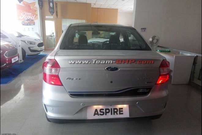 With the launch of the mid-life update of the Figo hatchback, Ford, in addition to updating the car, also revised the variant line-up of this compact hatchback. The variant list was reduced to just three variants i.e. Ambiente, Titanium and Titanium Blu. Now, it seems that the American automaker is going to do the same with its compact sedan Aspire as well. Curtsey Team-BHP, images of the top-spec Titanium Blu variant of the Aspire have surfaced on the internet. The images were taken at a dealership in Surat, Gujarat. With the help of these images, we can tell you that the Aspire Blu is going to get the exact same visual features as the Figo’s Titanium Blu trim.