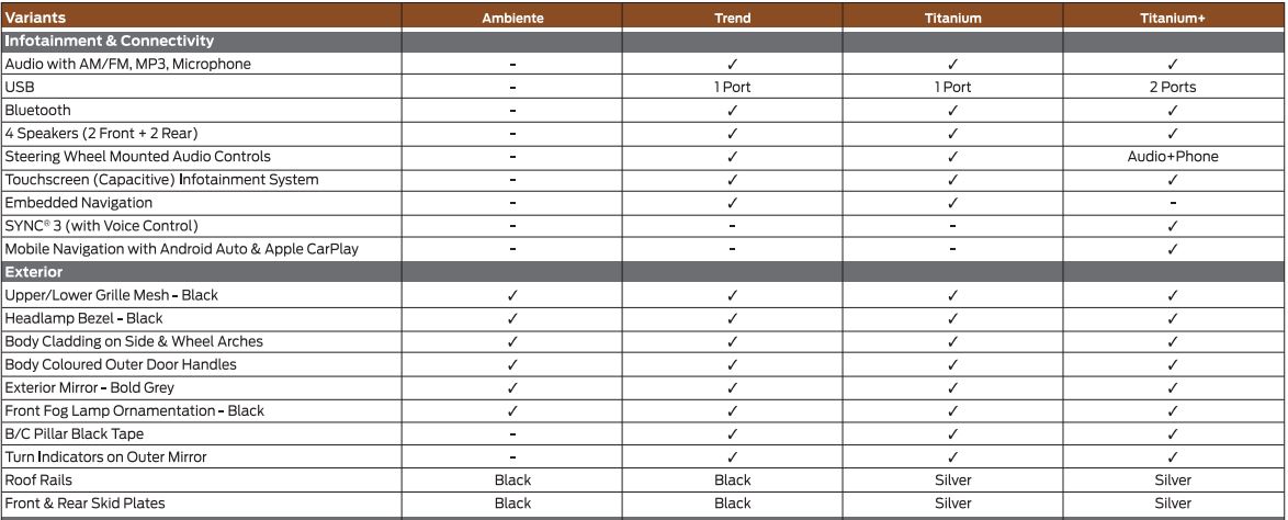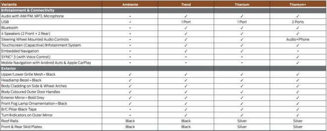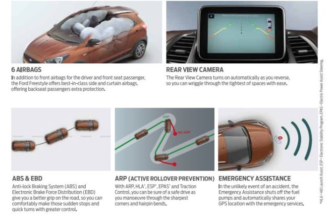 In terms of trim, Ford will be offering the Freestyle in four variants on each engine option Ambiente, Trend, Titanium and Titanium+. What is important is how much the Freestyle gets as standard, even the base variant gets a safety kit like ABS with EBD, dual-front airbags, three-point rear seat belts, reverse parking sensors and rear fog lamps.Moving upward through the Trims, the Trend adds a rear-view camera, and front and rear fog lamps, while the range-topping Titanium adds further on the list with Hill-start Assist, ESP and traction control (Which put together acts as an Active Rollover Prevention). Meanwhile, the top-spec trim also gets four more airbags and an emergency assist system.’