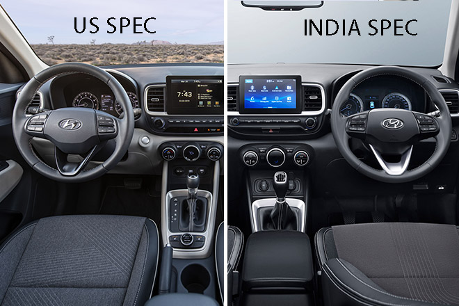 Since the Sub-4-metre regulation is specific to India, the US spec is marginally larger in dimensions when compared to the India-spec model of the Venue. Width wise, both models are identical, however, the US spec is 41mm longer, and the wheelbase is also elongated by 19mm. The India spec Venue is marginally taller by 26mm which is down to the added ground clearance which is demanded by Indian customers.