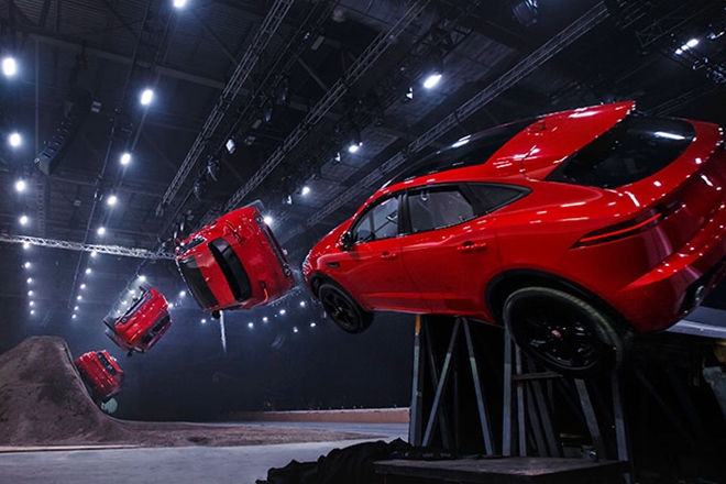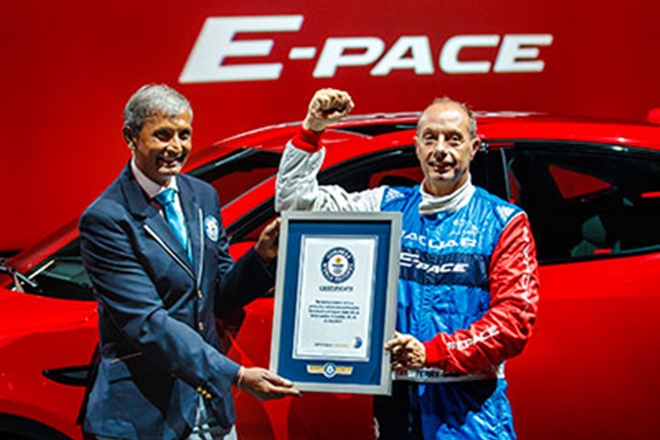 Jaguar E Pace does a 270 degree mid-air roll and makes a perfect landing on its wheels