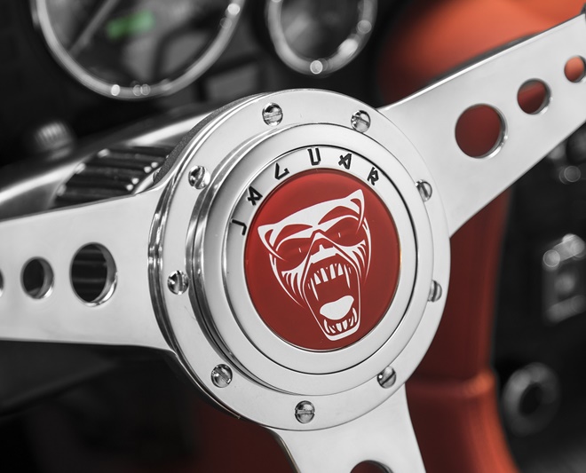 Inside, classic Jaguar style meets modern day convenience. The leather seats are hand trimmed in Pimento Red with black piping and embossed headrests, while a black hand-crafted carpet and Alcantara headlining finishes off the trim. The dashboard features Dark Grey stained Sycamore veneers – the preferred material for Nicko’s favourite snare drums.