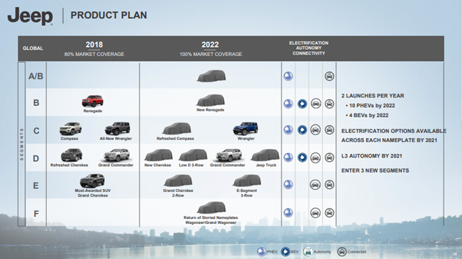 Other global SUVs on cards include New Jeep Renegade, New Cherokee, a new Jeep Wrangler pick-up and the return of storied nameplates Wagoneer/Grand Wagoneer.
