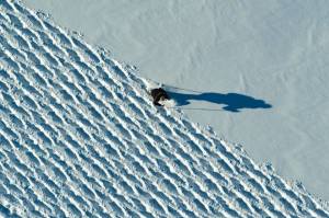 Land Rover’s Arjeplog facility uses a frozen lake to provide the perfect conditions for engineers to test and assess the latest models. Renowned snow artist Simon Beck created the 53,092 sq m anniversary logo by walking more than 45,000 steps across the powdery surface inside the steering pad, accompanied by a quartet of the latest Range Rover SV models.