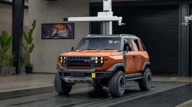 The L-shaped light theme continues towards the rear, and the SUV runs on 19-inch wheels, gets all-LED lighting, cameras instead of ORVMs, a ladder to access the roof, and even a jerry can mounted on the side. It will be interesting to see what the production unit will look like.