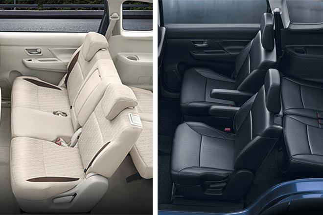 While the Ertiga comes with a beige with faux wood style interior, the XL6 offers an all-black interior. While the overall styling of the dashboard and cabin is similar to the Ertiga, the XL6 instead offers a stone finish garnish and silver accent trim panels. In infotainment system is the new Smartplay touchscreen system which is offered in all of the latest Maruti Suzuki cars. However, the most distinct feature in the XL6 is that the second row of seats replaces the bench seat for a dual captain seat layout. Meaning that while the Ertiga offers a 7-seat layout, the XL6 offers a 6-seat layout. Maruti Suzuki has also worked on making the cabin quieter with additional sound-absorbing materials for a better in-cabin experience.
