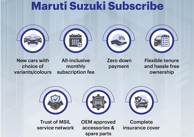 Besides the flexibility of tenure, the programme offers nil down payment and includes registration costs, insurance and renewal as well as routine maintenance, and roadside assistance as well. Progressively Maruti Suzuki aims to offer Subscribe in 40-60 cities in the next two-three years, Shashank Srivastava, Executive Director (Marketing and Sales) Maruti Suzuki India Limited, said.