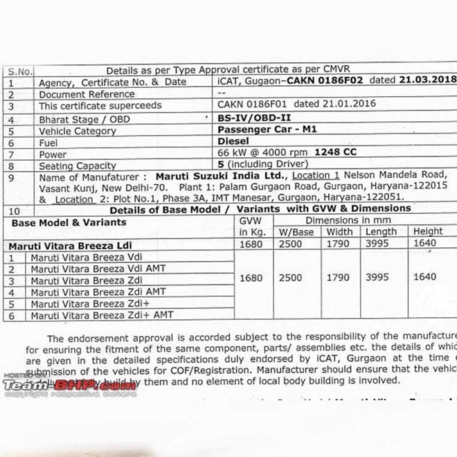 Ever since its launch, the Maruti Suzuki Vitara Brezza has been missing out on an automatic option and a petrol engine. The former issue now seems sorted as the Vitara Brezza will be offered with an optional AMT (Automated Manual Transmission) soon. The information got revealed through a leaked document, courtesy Team-BHP, that has been doing rounds on the internet. The document shows that AMT will be offered with Vdi, Zdi and Zdi+ variants of the car. A few hours back, we reported that the company is set to launch the 2018 Maruti Vitara Brezza this month. The new AMT trims will most likely be launched with the 2018 model, the complete details of which you can read here.