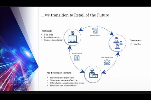 The traditional method of auto retail entails Mercedes-Benz India to manufacture and provide the vehicles to the franchise dealerships in wholesale. The dealer would buy the vehicles from MBI and create an inventory which they would sell to the customers. A standard practice in most retail sectors.