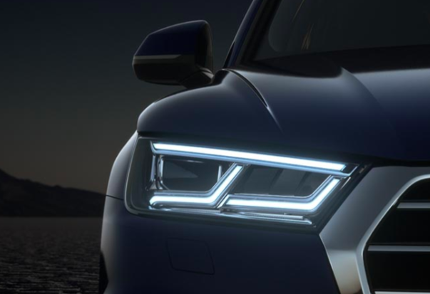 10:25 am: The new Audi Q5 is made in a Singleframe grille with a solid frame supporting the vehicles aerodynamics flat front end. It is available with headlights that are either in LED or high-resolution Matrix LED technology with dynamic turn signals on top-variants.