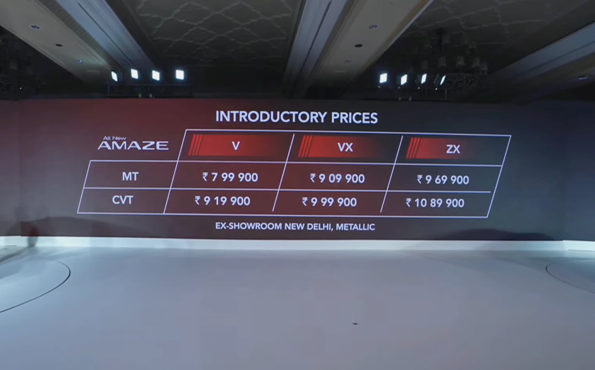 Here are the variant-wise pricing for the new Honda Amaze. These are introductory prices and are valid for 45 days.