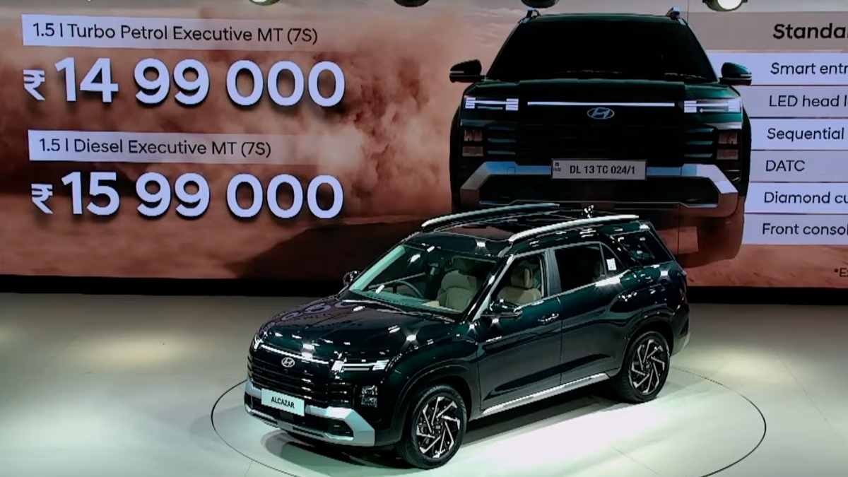 The Hyundai Alcazar facelift has been officially launched in India, priced at Rs 14.99 lakh onward for the petrol version, ex-showroom. The Alcazar is available with two engine option, a 158bhp petrol and a 113bhp diesel, mated to a choice of gearboxes that include a manual, DCT, and a torque converter automatic.