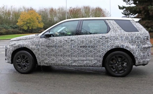 One of the first things to catch the eye is the fact that the new Disco Sport gets bumpers that have a larger profile than the car that it replaces. Notably the air dams, both in the centre and the flanks are larger both in terms of width and height. The remaining design details on the front fascia including the likely to be redesigned grille have been hidden below the layers of heavy camouflage. As of now the model seems to retain the current motifs and headlamp cluster as the variant that it will replace, although these could be placeholders in this case. In terms of the silhouette the Land Rover Discovery Sport seems to remain largely the same. The next changes can be found on the rear bumper and the heavy camouflage seems to suggest some design tweaks to the tailgate as well. This test mule also seems to be riding on new alloy wheels that have been painted in matte black.