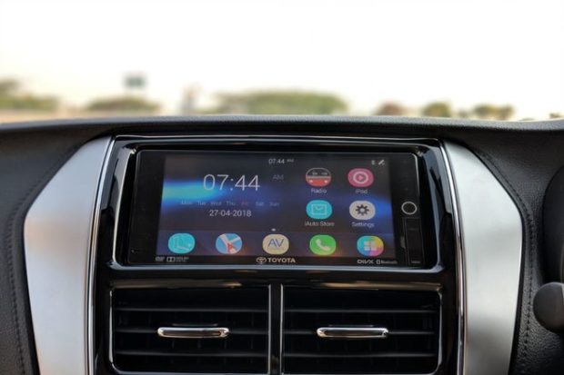 11:35 am: Toyota Yaris features a 4.2-inch touchscreen infotainment system with in-built navigation. It supports Bluetooth connectivity but does not get the option of Apple Car Play and Android Auto. It does get MirrorLink. The screen size is decent and responds well. The new Yaris also gets gesture control which is first in this segment. The automatic climate control gets soft buttons that enhance the overall cabin. The bulky steering wheel is mounted with controls.