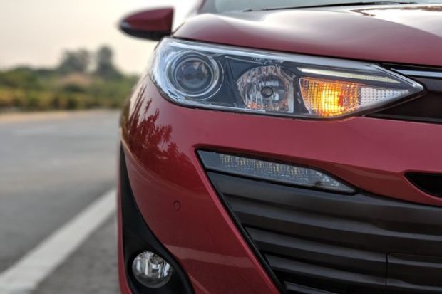 11:00 am: The design cues on the new Toyota Yaris has been inspired by the Toyota Corolla sedan. It gets a soft and subtle treatment to its front fascia, the Yaris is exactly not the boldest or aggressive looking car. However, the wide lower front grille and some muscle on the bonnet gives a bit bolder look. The character lines on the side of the car make the car look pretty and premium. The headlamp cluster with projector headlamp is very different from the Corolla sedan and is being offered as a standard feature. However, Daytime Running Lights (DRLs) are available only on the top VX variant of Toyota Yaris.
