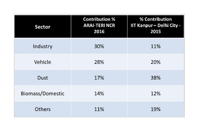In the table given below, studies from ARAI-TERI as well as IIT Kanpur suggest that industries contributed to 30 per cent PM 2.5 in 2016 while vehicles at a dangerously close 28 per cent. Depending on the age of the vehicle and emission norms that it adheres to, the pollution level varies. Biomass contributed to 14 per cent.
