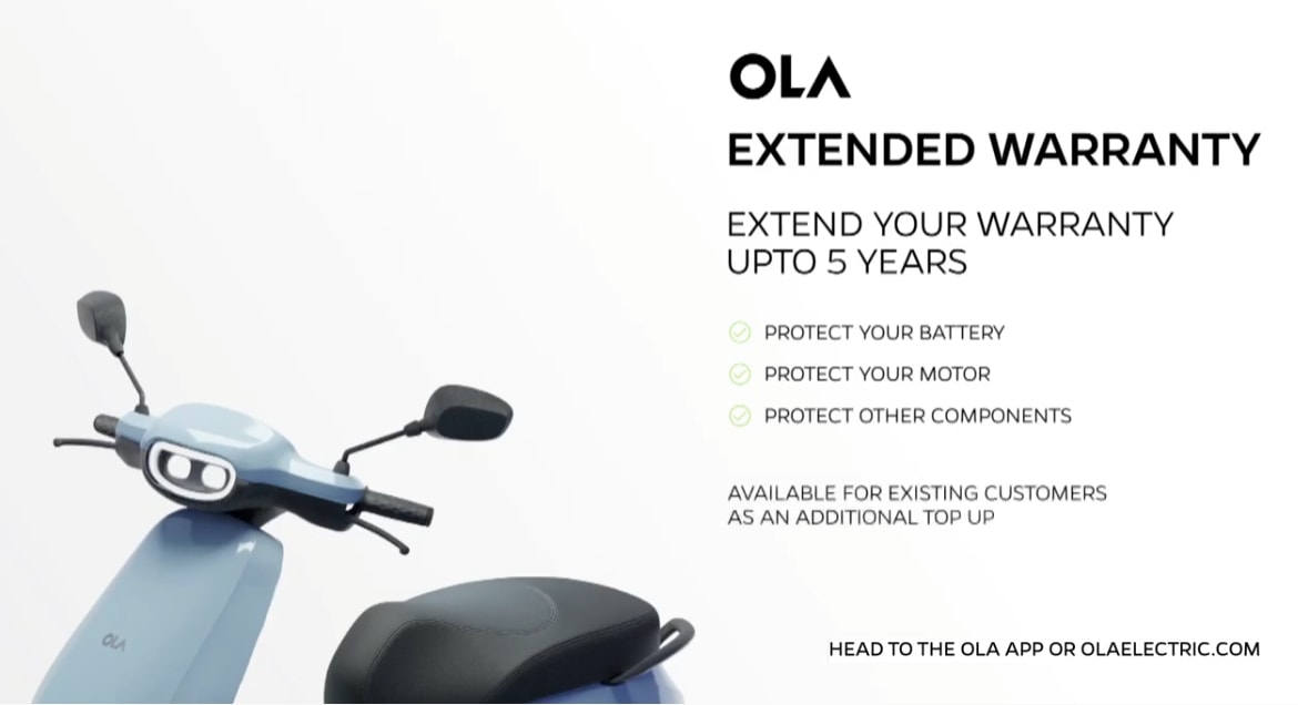 Ola is offering extended warranty package to its electric scooters' customers who can extend their warranty for up to 5 years.