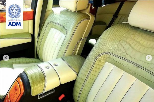 Goods are allowed to be manufactured from crocodile leather. However, it is only permitted following authorisation from CITES in the 160 countries in which it has its jurisdiction which includes Italy. As the vehicle or the third party is reportedly not authorised to use the material, the owner may be required to reupholster the vehicle in addition to heavy fines.
