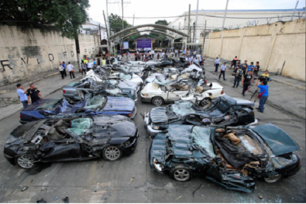 Earlier a bulldozer destroyed smuggled luxury cars worth $1.2 million including the likes of Lexus, BMW, Audi and Land Rover SUVs, during the 116th Bureau of Customs founding anniversary in Metro Manila, Philippines. The Bureau of Customs seized $2.93 million worth of smuggled vehicles last year, part of the $866 million in seized goods, government data showed.
