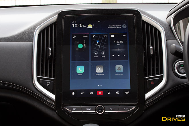 The MG Hector is the odd-one-out in this list of touchscreens.  It offer the largest system measuring in at 10.4-inches in size, but it uses a vertically oriented design. It dominates the Hector’s dashboard with its large size and it is the primary input system for nearly all the in-car controls of the vehicle. The user can not only control all the infotainment function of the car, but also the climate control functions. It offers Apple CarPlay and Android Auto along with in-built app functions that offer online music and video streaming as well. It offers a 360-degree view parking/reversing camera. Like the Seltos and Creta, the Hector is also a connected car and uses an eSIM to allow access to MG’s iSMART connected car technology. With the wake-up command “Hello MG”, users can use voice recognition technology to operate many functions of the car like the sunroof, driver window, navigation, music, climate control and more. It can also provide vehicle dynamics and diagnostic reports.