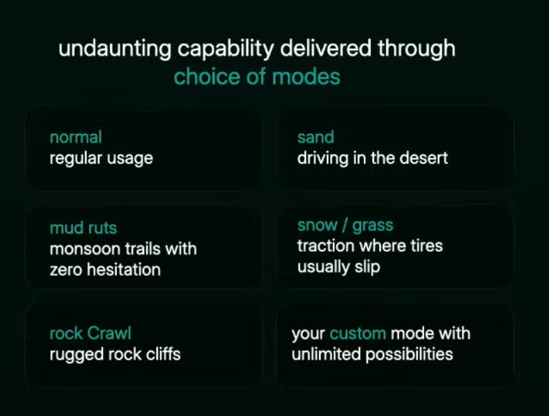 The Harrier EV gets six drive modes to offer the best performance in various conditions.