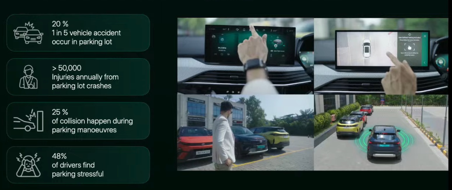 The Harrier EV can be summoned in a parking lot using the key and can also park itself. This is interesting.