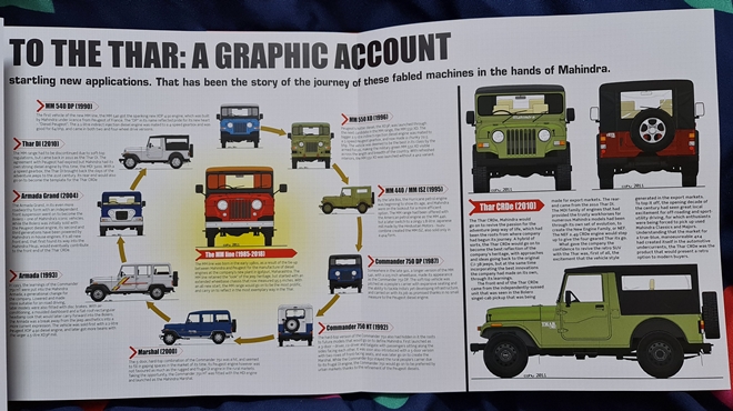 Through the pages, you will be taken way back to the roots of Mahindra’s humble beginnings in India. The journey of Mahindra from the Willys Jeep CJ-2A (first vehicle assembled by M&M in India) to the CJ-3B, which Adil terms as the spiritual ancestor to the new Thar, is a part that will glue you to the book and give you a taste of things to come in the next pages.