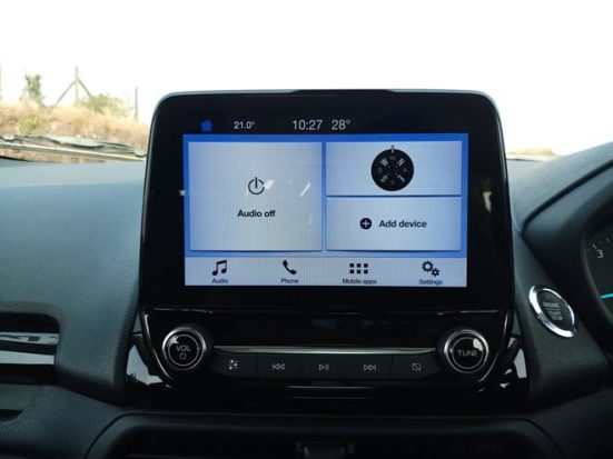 With the launch of the facelifted Ford Ecosport in November 2017, the company replaced the button-heavy dash and replaced it with its 8-inch touchscreen and SYNC 3 technology. This has enabled GPS navigation and phone connectivity on the Ecosport along with reverse parking camera. Ford’s SYNC 3 technology on the Ecosport also supports Apple Car Play and Android Auto. While the regular audio system with speakers and Bluetooth is now standard on the base variants of Ford Ecosport, the touchscreen infotainment system are available on Trend, Trend +, Titanium, Titanium + and the recently launched Ford Ecosport S. The Suncy 3 with voice navigation and Apple Car Play, Android Auto are enabled only on the top Titanium + and Ecosport S variants.