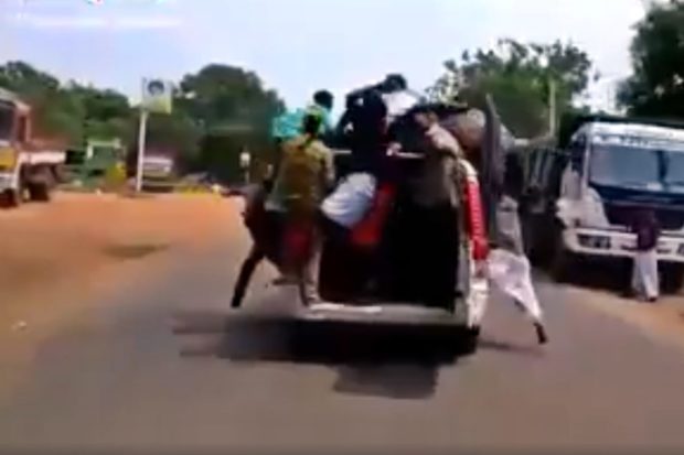 Indian Highways are bad enough as they are unless of course you and your chums wake up one morning and have a taste for a bit of life-threatening, borderline masochistic anarchy. Like these blokes in Tamil Nadu in the video below. The horrifying video that appears to be on an open arterial highway somewhere in Tamil Nadu caught on camera by Facebook user Tanay Sai, shows at least a dozen people hanging out of a Mahindra Scorpio with the boot door wide open. More than a blatant disregard for the law, the video shows how callous we can be sometimes not only with our lives but with the lives of others. With at least one if not two people hanging out of the windows, the car can be seen veering between lanes and even pushing its way onto the wrong side of the highway as the Scorpio rolls heavily to each side with every change in directions.