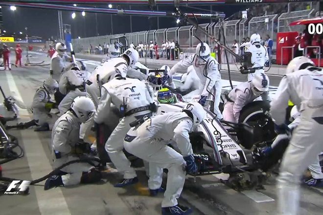 The William’s team was so fast, it’s actually difficult to see what’s exactly being done. Here’s a bonus video of the Red Bull team’s pit stop in slow motion: