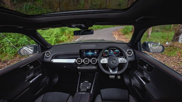 The EQB’s cabin will remind you of the GLA and GLB but this one gets gold details around its turbine-shaped AC vents. Features on the Mercedes-Benz EQB include a 10.25-inch digital instrument cluster and touchscreen system, a panoramic sunroof, 64-colour ambient lighting, a powered tailgate, and electrically-adjustable front seats.