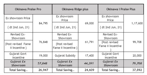 Here is the revised pricing of Okinawa high-speed electric scooters (after FAME II, Gujarat EV policy):