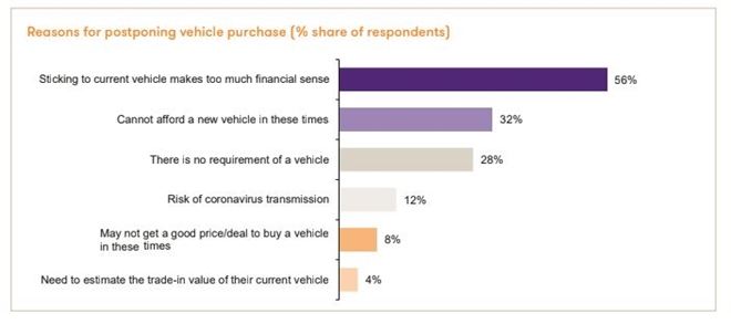 It is interesting to note that, while 29% of the surveyed respondents planned to purchase a new vehicle over a period of 12 months, 8% showed a willingness to purchase a new vehicle in the next six months. More than 56% of participants feel that it makes better financial sense to keep their current vehicle, considering the overall economic scenario at present.