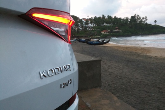 The third different tuning of the same 2.0L TDI engine block has given Skoda the flexibility to add another powerful engine to its portfolio. We have seen the 2.0 TDI with 143 bhp on the Octavia, 177 hp on the Skoda Superb and the Kodiaq makes about 150 hp on the same engine. The power is just right for the Indian road conditions and even in narrow roads of Kovalam here in Kerala the both the engine and the steering were very responsive. The overall ride handling and suspension had no complaints. However, to my surprise, the 7-Speed DSG wasn’t as responsive as it is in other Volkswagen Group or even other Skoda cars. The gearbox responses slowly at medium speeds and that’s maybe because of the heavy kerb weight of the Kodiaq. Skoda claims a mileage of about 16 km on the Kodiaq and here at the tests the SUV was giving us a mileage of about 11-12 kmpl. The handling is so smooth that you tend to forget that you’re driving an SUV. Skoda Kodiaq certainly does not give that top SUV driving stance that is offered on the Fortuner or Endeavour but is certainly silent and doesn’t carry that heavy noise of diesel engine inside the cabin.