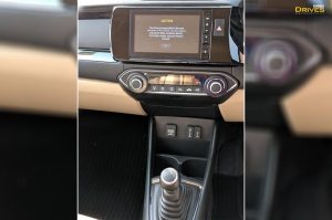 The biggest change on the Honda Amaze has been done to its interiors. The use of black and beige finish on the dashboard creates more sense of space in the cabin. Bits of piano black adds to the over premiumness of the cabin. The use of plastic on the dash is fine quality, however, the finishing around the roof is too soft and not up to the market. The dashboard of top-manual versions of both petrol and diesel variants features the Honda’s Digipad 2.0 touchscreen infotainment system that supports navigation, Apple Car Play and Android Auto. The touchscreen gets resistive touch and response well to finger touch.