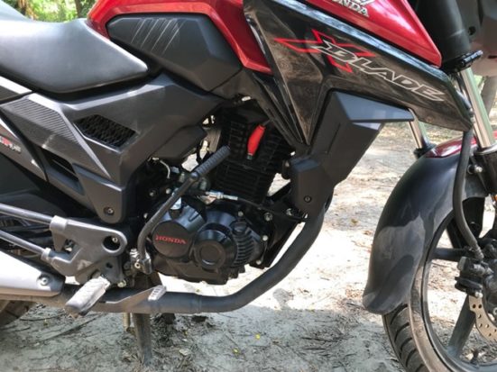 Honda X-Blade’s 162.71cc single-cylinder engine is a refined one and there is minimal interference of unnecessary vibrations, on low or high RPM, along with the exhaust note which is subtle. A power output of 13.93 hp at 8500 rpm and torque of 13.90 Nm at 6000 rpm renders the X-Blade a fun to ride motorcycle, but with a smooth and laid back throttle response that doesn’t poke the boy racer inside the rider.