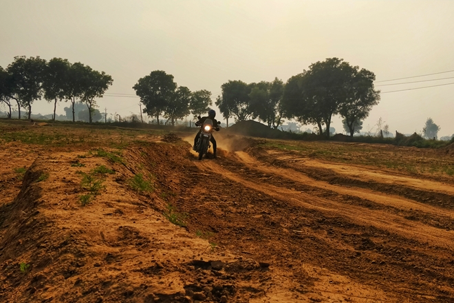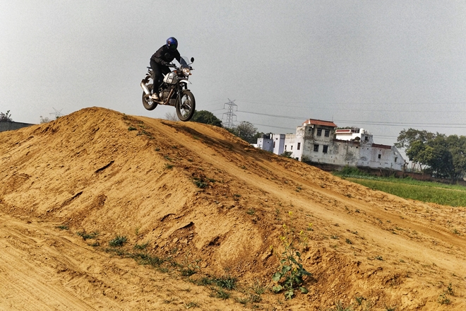 The BSIV Himalayan continues the BSIII variants innate capabilities but with more refinement. It will cruise along the entire day at 80 kmph without the slightest bit of vibrations or feedback. Push the needle past the 100 kmph mark and you’d find a slight hint of vibration sneaking through the footpegs and the handlebars, but only slightly. Otherwise the Himalayan is smooth on the trott and is leagues ahead of its predecessor in terms of damping and refinement. In the dirt, is where the Himalayan really shines, the rear suspension gets a full 180 mm of travel and the front has an even higher 220 mm of travel. That coupled with 220 mm of ground clearance and knobbly 21 inch front and 18 inch rear tyres allow the Himalayan to conquer anything from rocks to mud and even some soft sandy dirt! The upswept exhaust means that Enfield is even good for some serious water wading although we decided to take that on face-value.