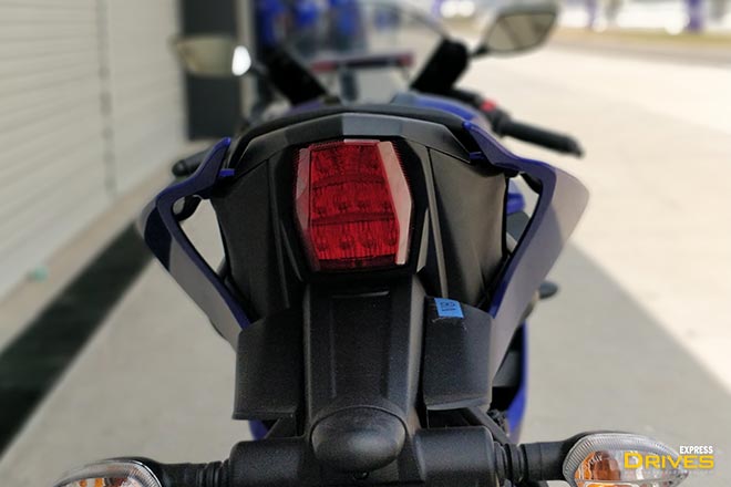 A split seat configuration has been kept with an S version also in the pipelines. The R15 v3 is 15 mm taller the previous bike at 815 mm. Matched with more rear-set footpegs and lowered clip on the riding position is so much more commit than the v2. Meanwhile, the front cowling has gotten sharper too and does look a lot more like the R3, it ditches the R15s dual halogen set up for sleek LED headlamps up front. Yamaha will only have two colours on offer on the R15V3 and both are based in black, you can pick between the Thunder Grey with red accents or the very Yamaha, Racing Blue.