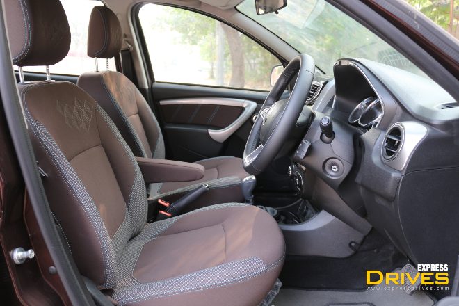 Just like the exteriors, the interiors of the Renault Duster, continue to feature the same design layout. However, the steering wheel is a new unit and looks smart and modern while at the same time, feels nice to hold as well. Minor modifications have been done to the instrument cluster as well. The all-black cabin is complimented by silver highlights on the centre console along with chrome highlights around the instrument cluster and air-con-vents. There is also a new upholstery colour on offer which gives the cabin a premium aura.