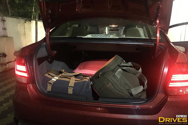 Frankly, nothing much. VW says that the bumpers are new and the headlight internals have been revised as well. On the topic of headlights, our test car was running LEDs and these proved quite effective on a 5am airport dash. There are static cornering lights too. You will also notice the new mesh grille. The tail lights too have been altered slightly but if we didn’t tell you this, probably you may not notice it. If you like cleaning your car now, you will also notice that the wipers can now be completely lifted and they don’t foul with the edge of the bonnet. Inside, the same layout welcomes you and so does the touchscreen infotainment system replete with Android Auto, MirrorLink as well as Apple CarPlay. The front seats are comfortable, if placed a tad low while the rear ones could do with a bit more legroom. The boot space is decent and could hold one huge airport bag as well as a few smaller ones.