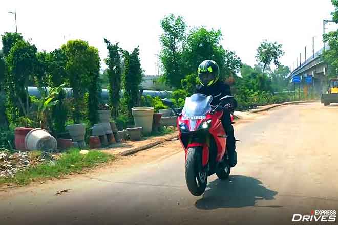 On the other hand, in Sport and Track modes, you get full power and torque at 34hp and 27 Nm respectively. The throttle response is a bit gentle in Urban and Rain modes and gets sharper once you switch to sport and track modes. The top speed is also limited to 125 kmph in Urban and Rain modes. On the other hand, in Sport and track modes, you can go for the full monty at 160 kmph.