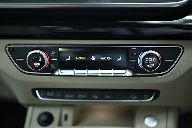 It is great to see that the HVAC controls and Audi Drive Select buttons are controlled by physical buttons on the dash. However, as the MMI control knob has been removed, the storage compartments on the centre console which have been accommodated in its place are awkwardly designed. They don’t seem to store most things or contain them properly. Some trims on the centre console and dash use the scratch-prone piano black plastics but thankfully they are kept to a minimum.Â
